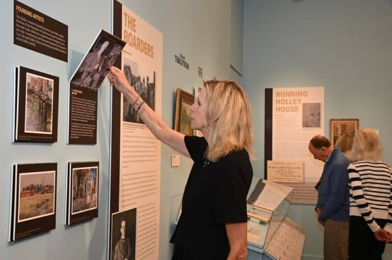 On Wednesday, Thursdays and Fridays docents will be leading visitors through the Permanent Collections Gallery and Special Exhibitions Gallery. Our current exhibition features The Holley Boarding House: Inspiring American Impressionism. Exhibitions in our Permanent Collections Gallery include The Cos Cob Art Colony; Rediscovering the Cos Cob Art Colony A Tribute to Susan Larkin; Treasures from the Collections: Ceramics by Leon Volkmar; and the short film “Our Place in History.”